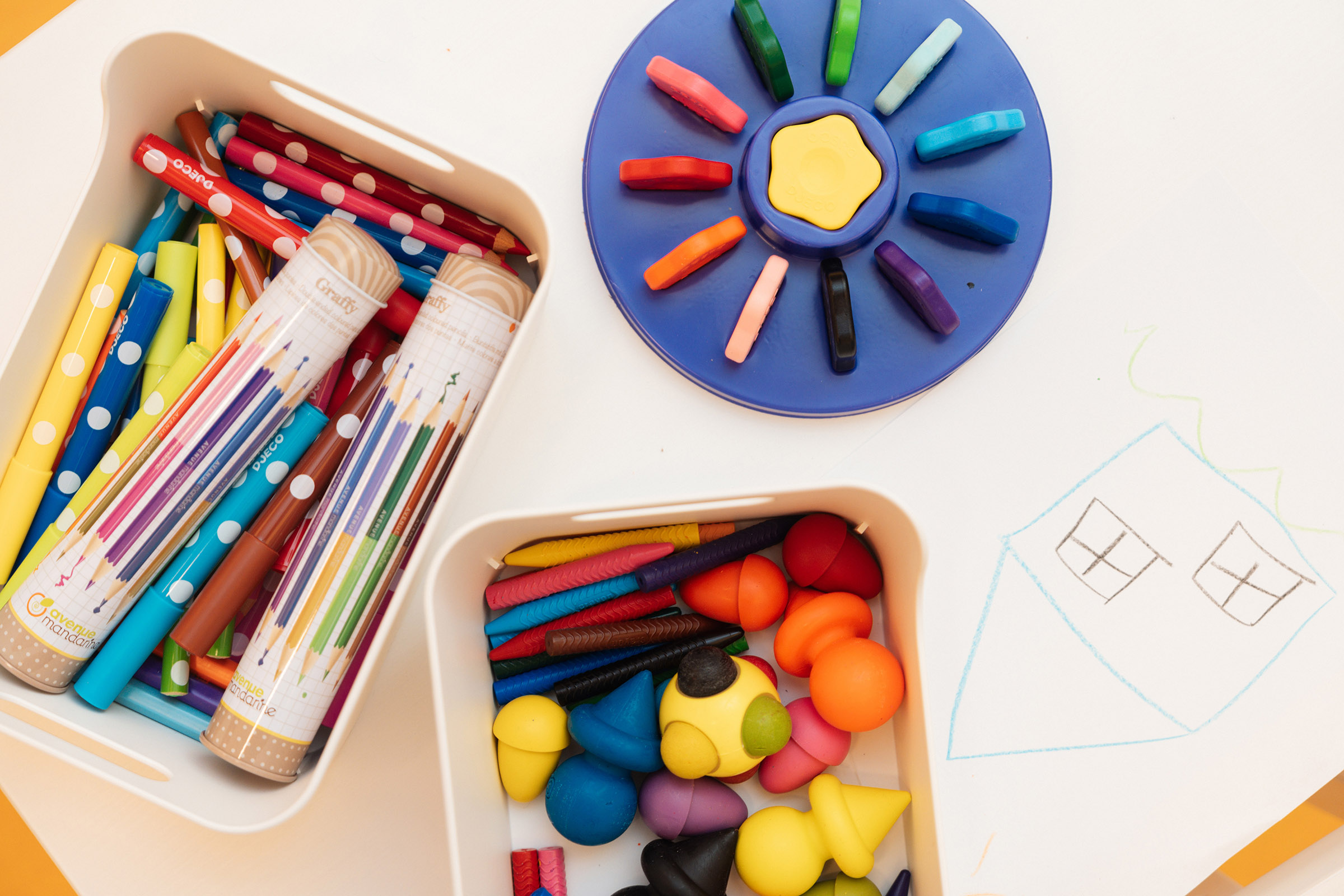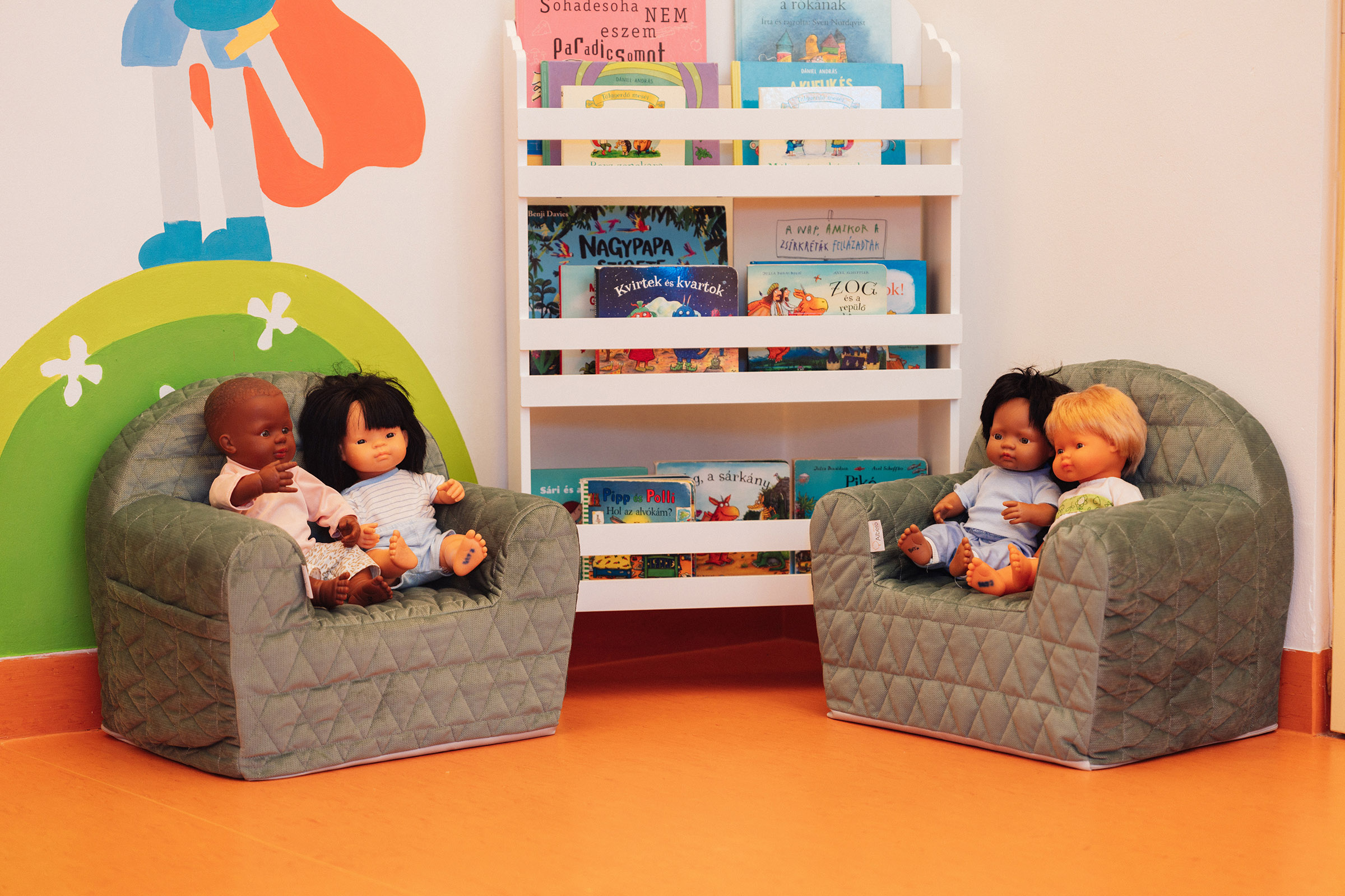 A legkisebbeket új matatófal, játszószőnyegek és mozgásfejlesztő eszközök várják. A kuckózni vágyó apróságokóknak sátrat építettünk, és kialakítottunk egy mini olvasósarkot fotelekkel. Különféle méretű autókból, babákból továbbra sincs hiány, és ha gyermeketek a szerepjátékokat kedveli jobban, nálunk számtalan dolgot kipróbálhat, legyen szó főzésről, takarításról, vagy orvosi vizsgálatról. A kis művészeknek gyönyörű színekben pompázó minőségi marok- és kavicskréták, ceruzák sorakoznak polcainkon.