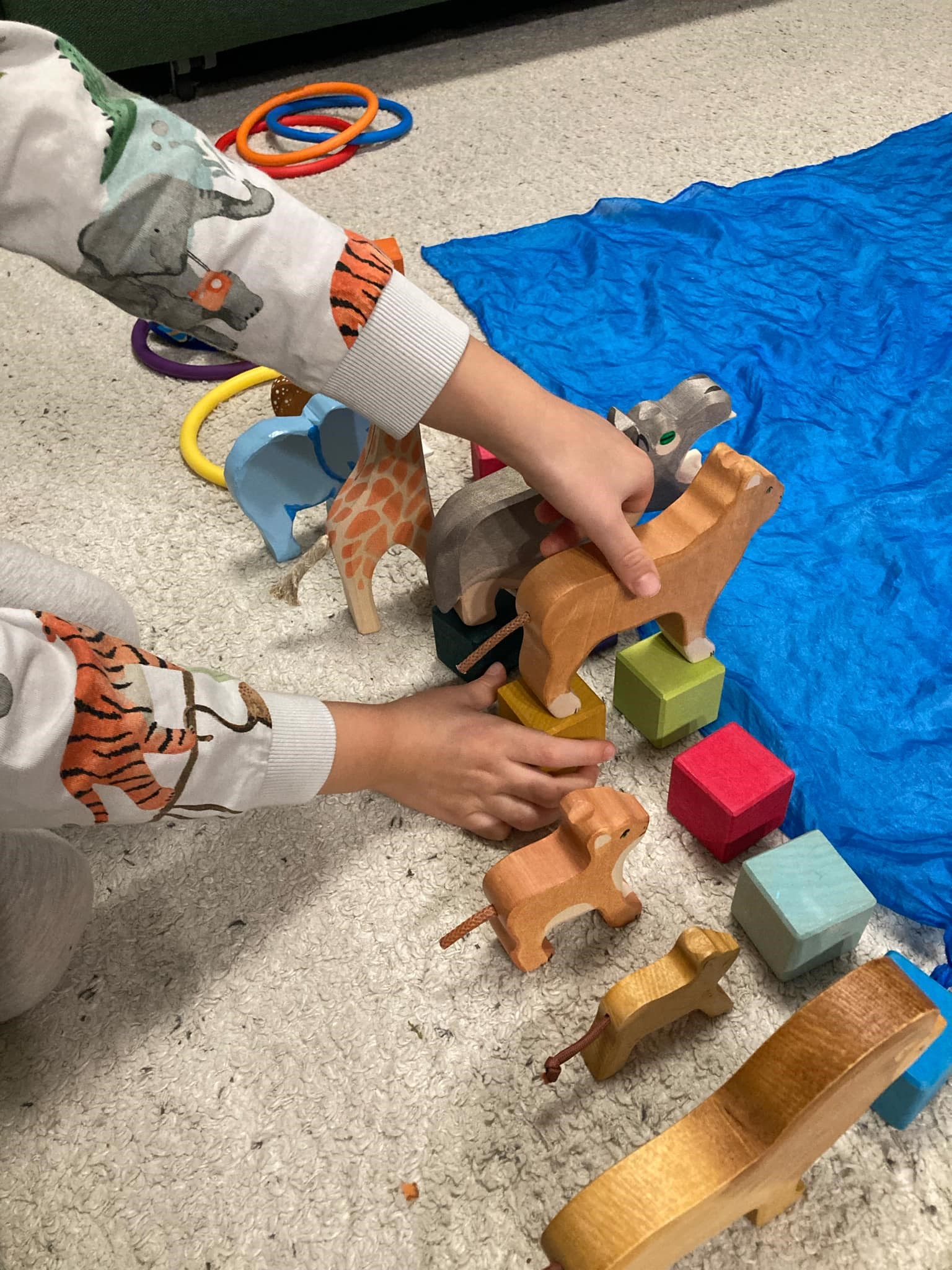 Amiben viszont úgy érzem, hogy ügyes vagyok, és szintén az elmúlt években tanultam, az az úgynevezett játékra hívás. Ilyenkor előkészítek egy-egy játékot a szőnyegre, megépítek valamilyen jelenetet, mondjuk egy állatkertet vagy egy erdőt karácsonyfával és állatokkal, és azután csak hagyom, hogy a gyerekek azt csináljanak belőle, amit csak akarnak. Ez tényleg mindig bejön, és hihetetlen látni, hogy mennyire meg tudja mozgatni a fantáziájukat.