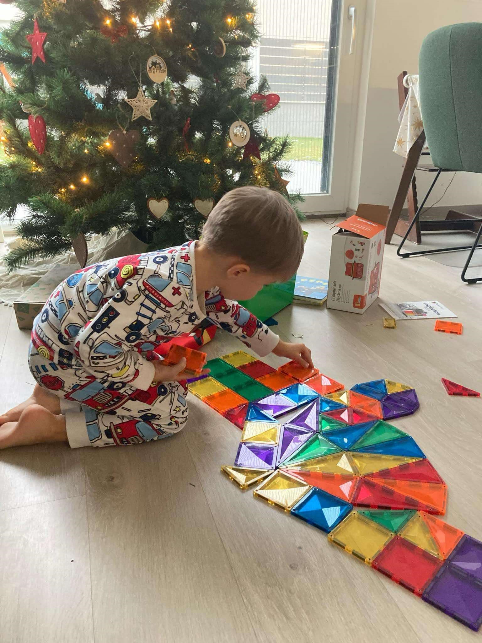 Engem teljesen magával ragadott a nyíltvégű játékok világa, ezen belül is a természetes anyagból készültek a kedvenceim. Ám idén a Jézuska Connetix mágneses csempéket hozott a fiaimnak, és csodálatos látni, hogy a 2 és a 4,5 éves egyaránt nagy örömmel és elmélyülten használja, és hogy megfér egymás mellett a szép fajáték és a műanyag is.