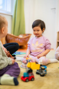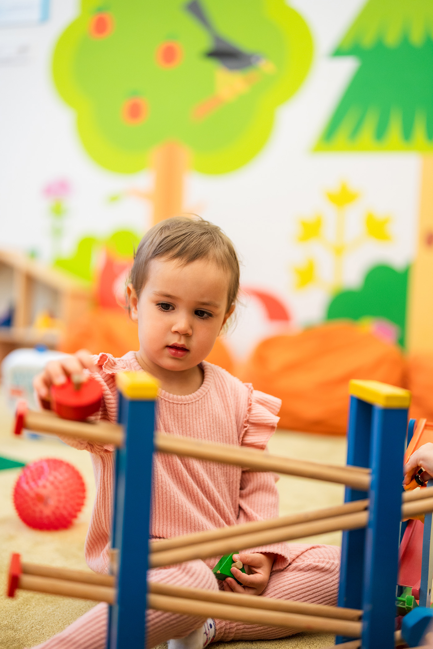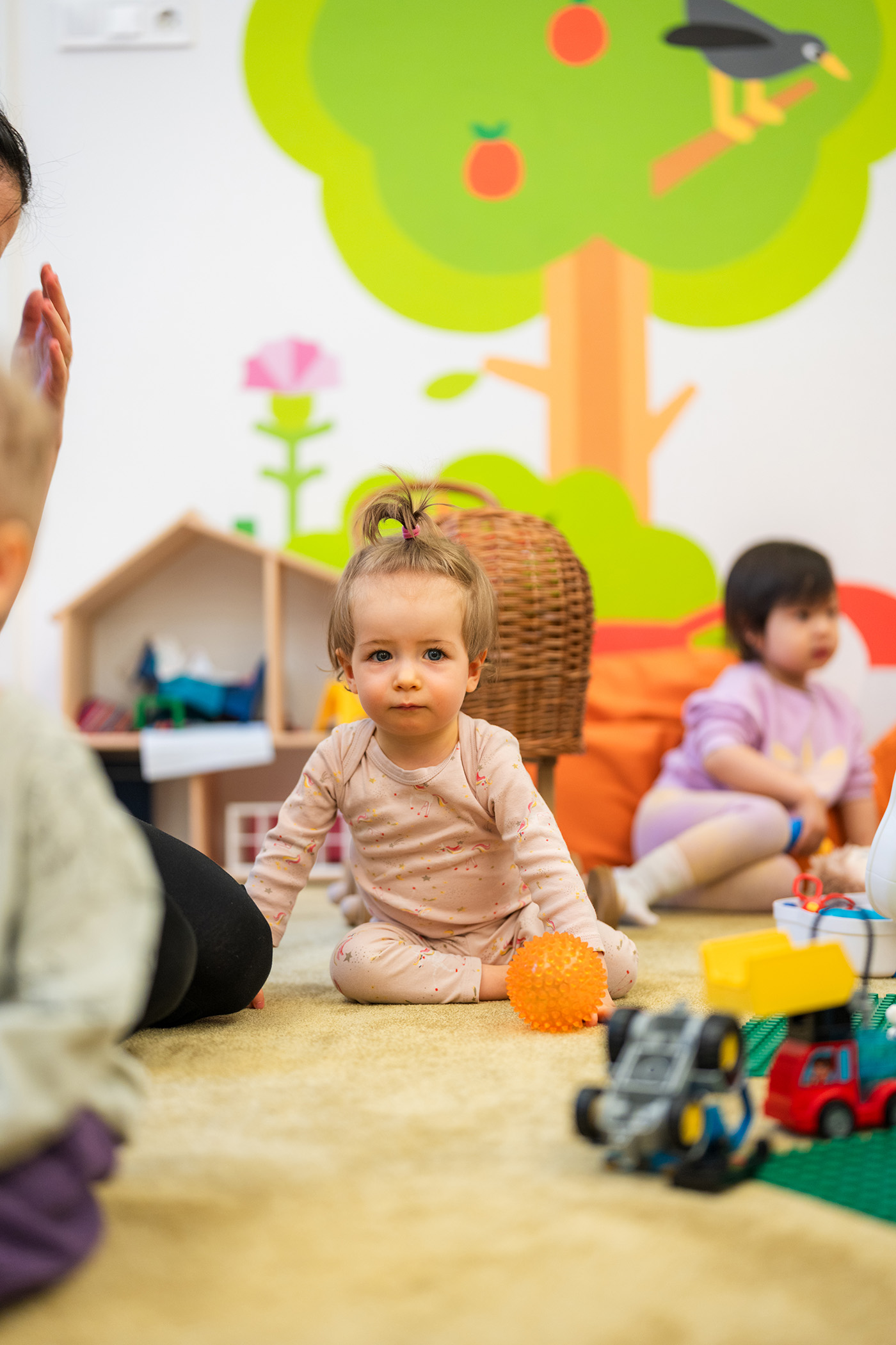 - Tapasztalataink azt mutatják, hogy a „biztonságos bázis” szerepe a leghatékonyabb: légy jelen, de maradj passzív megfigyelő! Érdemes valahol a fal mentén, a földön helyet foglalnod, ahol nem akadályozod a szabad játékot – így a szobában továbbra is könnyen tudunk mozogni.